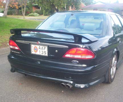 im am thinking of taking the spoiler off my el... i have taken it off and sussed it out...after washing it with water it leave very little rust stains on the boot of the car...what can i do to get rid of these stains? also THE HOLES!...what can i do to fill these holes up or at least make them not as noticeable? what do u guys think of the spoiler on the EL...yay or nay? debadging an EL... i want to get rid of the falcon futura on the back of my car...is this recommended( easily do-able) with an EL? can i also get rid of the ford badge on the back or will that leave a big mark when i take it off? 1 more thing!!!!!!! i currently have a 2.5" exhaust all the way through...with a tip thats getting rusty. now i dont like the look of the exhaust on the el( dont know why)...when you look at it from the side you can see alot of the exhaust exposed....i dont like this i was thinking of getting a twin exhaust muffler fitted but their seems to be no room for it to go onto the exhaust because the exhaust itself does not go in a straight line long enough for 1 to be fitting straight on is it possible to get a twin exhaust tip? would u guys recommened the tip that goes on normally and comes out sort of like a retangular shape? ty for ur time |