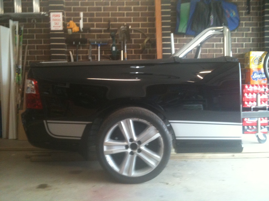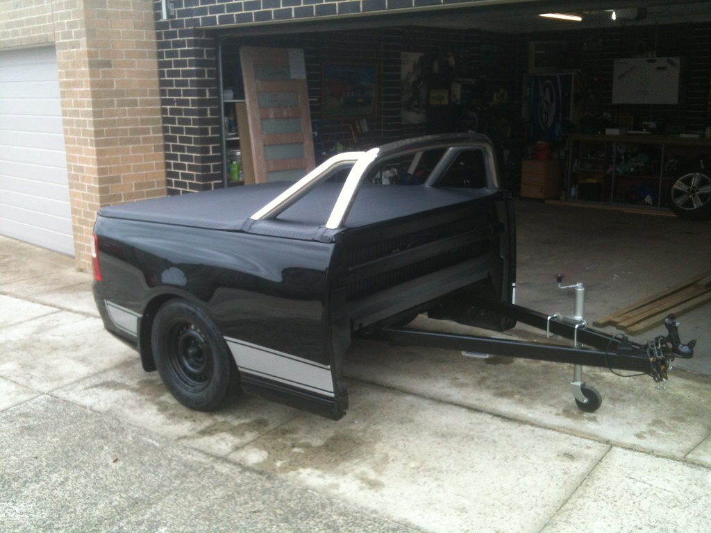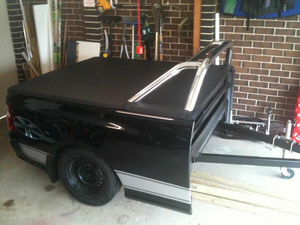 Trailer is all made up. I debadged it, changed the Ford badge on the tailgate to an FPV one, fitted a ute silver stripe kit, fitted up the tonneau cover and it came up a treat What da ya think?