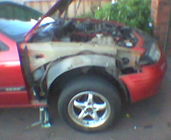 ANYWAYS! enough about that! back to the solution! found a really cheap spray painter, and bought a second hand right side gaurd, paid $120 for the gaurd, and the spray painter charged me $200 to spray the second hand gaurd and bonnet for me 5 days of driving with a white bonnet i picked up the beautifully sprayed bonnet and guard, spent 2 hours last night removing the original f**k out Oh and while i was pulling it apart, there was a tube connected to the end of the battery... dunno wtf that was for LOL! cause it fell off