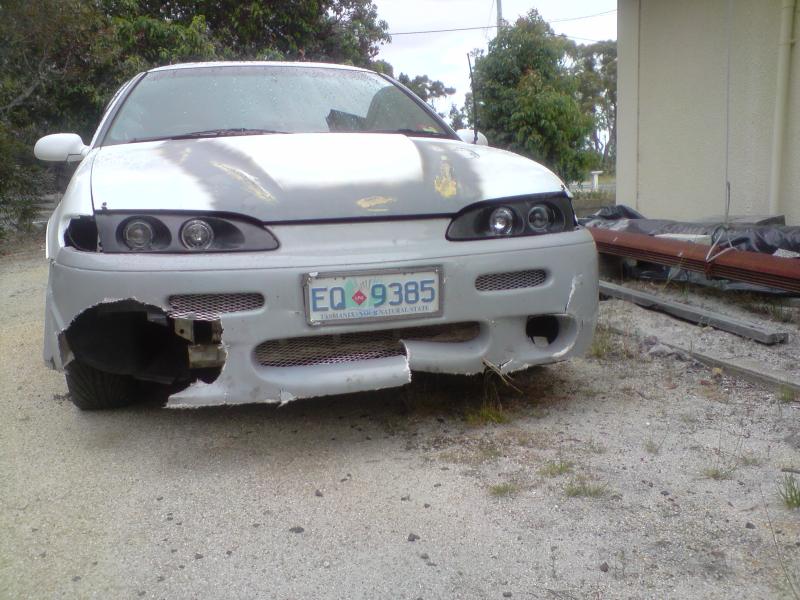 good work, definitely different. No front bar on it at the moment - hence the picture of the cars a**. I put the car into a ditch up the coast a day after testing fitting the new bar. It's not too bad though, I've actually rebuilt it (fair bit of time fibreglassing) and it hasn't come up bad at all. Still needs some sanding and then a paint, so will be a while till pictures of that appear. I'm also still mucking around with the intercooler, so that's stopped me from rushing to get it done. Edited by Macca, bloody LG KU990 camera phones with 5mp cameras LOL.