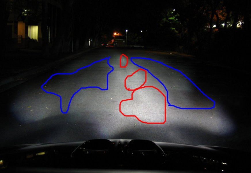 Yes, it is difficult to take good head on pics, you need to use a tripod or something. The camera lens has to be exactly in centre and in a 90 degrees angel to the tip of the bulb or in your case the shield in front of it. Then you can see all the Hot and Cold Spots in the reflector. I can see that after adjusting the headlights, you have a bit more light on the road, but there is still no proper beam pattern there. I am not sure but is it this model that has a second adjustment screw but it is sort of almost inside the wheel arches??? I need to know if the bottom part of the shield in the reflector, is in one piece or does it have any opening/s? Also I need to know what is the difference between the location of the H1 filament and HID arc? Now all we have to do is to find out the H1 and the HID focal points and harness the HID one so we can recreate the same focal point as the H1. Here is a pics to give you an idea of what we will be (hopefully) working to achieve. Also I have marked your beam pastern with all the Hot (in Red) and Cold (in Blue) Spots. The more detailed info and pics you give me the easier it will be to work out an acceptable fix.