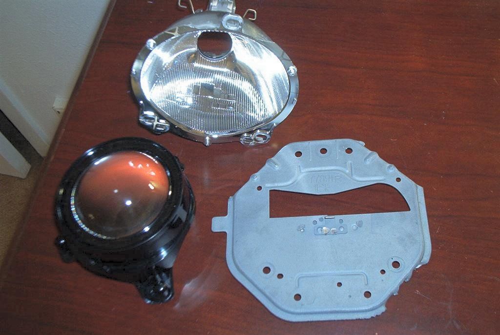 I see you want to retrofit that projector into your reflector. It could work. Couple of points to think about before taking that step. Do you know if they are used as Lo or Hi beam projectors in Ford Fairlane -94? If they are used for Lo beam, you need to find out what type of Halogen bulb they use. Then it is a simple matter of either getting same base HID bulbs or rebasing the ones you already got. The shied inside the projector may also need to be reshaped. Shields inside projectors are usually very easy to reshape.Pic 1. If they use the projectors as Hi beam then usually there are no shields in them or if there is one it has a very strange looking opening cut in middle of the shield. To make a shield so you can use a Hi beam projector as Lo beam is a case of Testing, testing…. But it is not that difficult. Pic 2. Once you have found out answer to the above, then it is a matter of finding a pair which I don't think is going to be that difficult. The size of the lens and the diameter and shape of the reflector is also very important to find out .