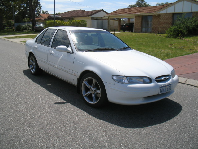 this is my wifes car ex pursuit el but my mate used to work for ford and he replaced the head lights on warranty as they were yellow as and a pain in the butt to see @ night! unfortunately she wrote it off last month and now has an ed xr8.....(pics back to front!)