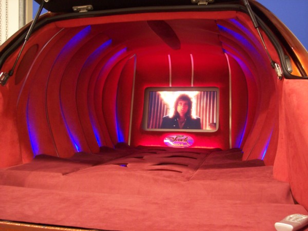 Custom 2 tone paint by House of Kolor - Kandy Tangerine over Silhouette with the break being a band of Kandy Violette over Metallic Gold - Pinstriping is 75% Lime & 25% Yellow. Custom Rear Entertainment Unit by Black Needle - All of the panels were individually done by hand ( it is not a mold ) each panel is divided by a band of stainless steel - every second band has a blue LED Spotlight shining down the band - the same feature is carried through from the floor. Sound System is a JVC Multi Media head unit with Alpine Speakers and Amps - based around a 27" LCD Television Screen - The system is run by a bank of 3 12v Dry Cell batteries. The same style has been carried through to the drivers cabin where you are surrounded by a cocoon of luxury leathers, suede and vinyls. Wheels are Koya Rogue 20"x8.5" chrome which fit nicely over the Brembo brakes - Rubber is front - 225x35s - rear 255x35s. The custom Aggressor Bonnet took over 6 months of design and development and is a working bonnet - 4 Air inlet flutes are on each side of the bonnet bulge with an air outlet at the rear of the bulge. A whole new inner skin was needed to allow for a smooth flow of air through the engine bay. Made of the highest grades of material, it certainly is a great head turner. As for the finish on the bonnet - as its innagural show the car took out Top Paint and last weekend took out the Overall Champion award at a car show. Lots of thanks must go to the quality workmanship on the car - just goes to show that there are Aussies out there who can do great work if given the opportunity to bring their creations to the road. Ciao - James