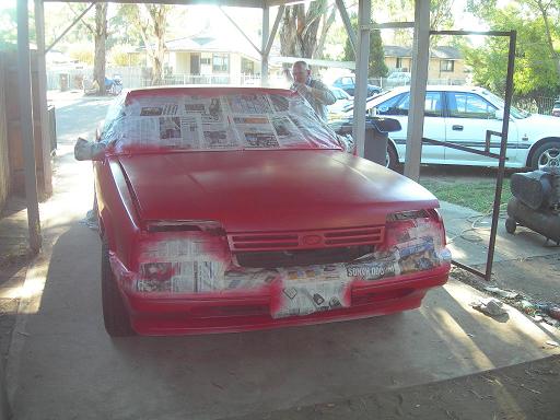i had bought my self some red paint to spray my old car...then i end up byeing my self another car witch is white andi didnt want to spray mine red so i was stuck with red paint so dad bought the paint of me and desided to re spray the ute....