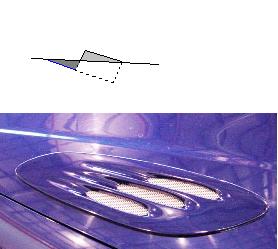i wanna try this design... you hald drop the guage into the bonnet. see how the xr scoop has the indents after the scoop... like that only the fibreglass will come up and over the top of the guage. so put the guage where the mesh is and wrap in fibreglass