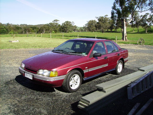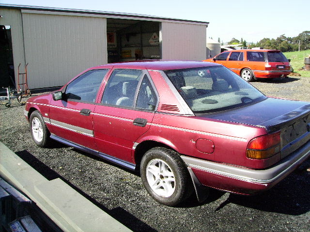 Firstly i was given an EA fairmont, which is not in bad condition apart from the rust in the sills.Its on gas and runs fine and i have some ed xr wheels to put on it,off my wagon. Then today i was at the wreckers and found some sprint side skirts and a rear lip (i can make fibreglass ones but a real one is still better). The side skirts cost me $30.00 for the pair and the lip on a bootlid was $50.00. The plan is to clean the ea up with the wheels, cover the sills ( and rust ) with the skirts and put a front and rear spoiler on it and then just drive it so i can put my wagon away and not drive it as much. Just a question but does anyone know what that ugly thing on the ea intake snorkle is for or can i piss it off and put my ed one on it. Fraser.