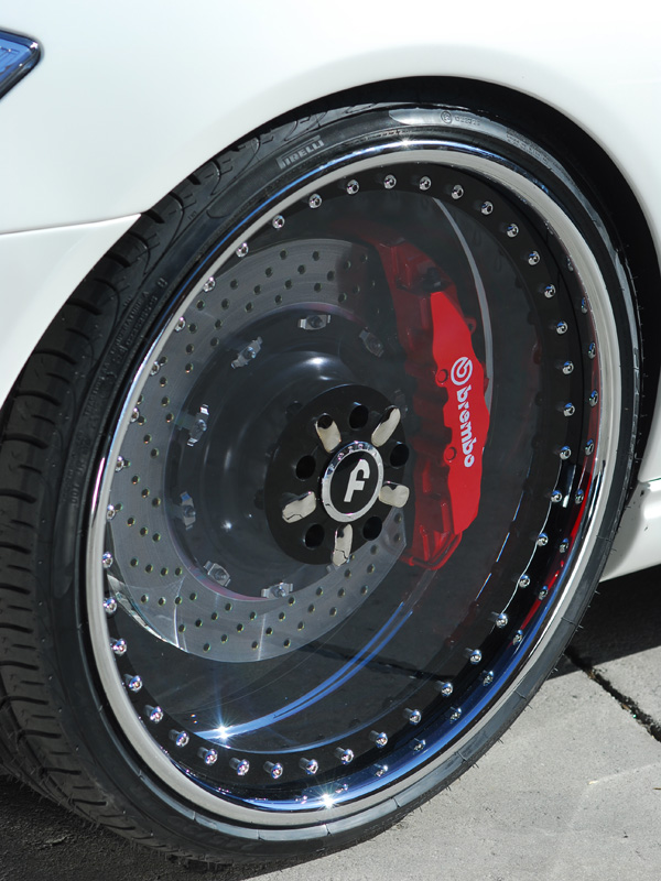 The creator and patent holder of "the clear wheel" Doug McGoon and Forgiato have combined to turn this idea into a real drivable wheel. In 2006 we proudly produced and introduced "The Clear Wheel" called Radurra for cars and motorcycles. Again we return to our roots of jewelry manufacturing. A technique known as bezel setting which only master diamond setters can know, is where the diamonds are just slightly larger than the bezel they are set into, and held in place by pressure. Understanding this, we put the same care and consideration towards the Radurra as we would towards a fine watch. By eliminating the alloy center of a three piece forged wheel and setting into its place a hard coated polycarbonate center with a glass-like finish we achieve an amazing and stunning look, with a finished product that looks too good to be a wheel. Much the same way the diamond is set into a bezel setting, the polycarbonate center is set into the forged aluminum hoops with precision machining and a jeweler's touch... the end result is a wheel that is strong, safe and beautiful. Now show off your high performance brakes and suspension on your high-end car or motorcycle. The same way you would add diamonds to your platinum watch, add the Radurra to your "platinum" car or custom chopper. With a vast range of color and finish options, your Radurra is sure to be as individual as yourself or your clientele. The Radurra is currently available in twenty and twenty-two inch, and are custom built on order for your car or motorcycle. The same way all Forgiato Wheels are custom built by master craftsmen. (More sizes available soon) Technical Data The center is 1.5 or 2" polycarbonate, chemical hard coated both sides. Weight 20" - 27 lbs, and 22" - 38 lbs (complete wheel weight) All other parts of the wheel are forged 6061t aluminum (Inner and outer hoops and Hub center) SAE tested, certified and passed Impact, cornering and radial tests. Now in production, average delivery time is 6-8 weeks. Suggested retail is $5000.00 per wheel