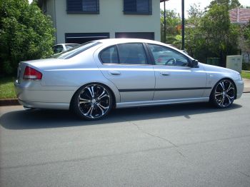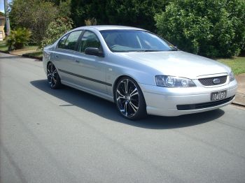 Ok the moment you all been waiting for as promised, i posted some pics of my silver AU about 5 posts up, and mentioned i bought a 2003 BA Fairlane Ghia V8 5.4L VCT Barra 220kw, and had some stuff done like lowered sports suspension and 18" FTRW rims with 235's on the front and 255's on the back, and recently got tinted windows and like i mentioned in the post me stupid didnt take a photo before it was all done, oh well still looks sweet, anyways in all its glory, hope you like the pics below......