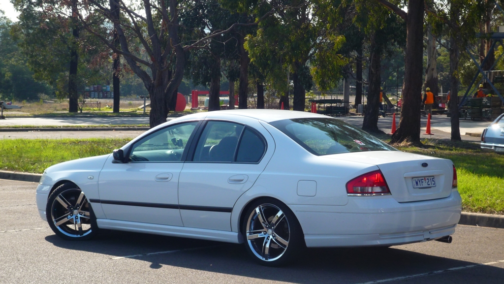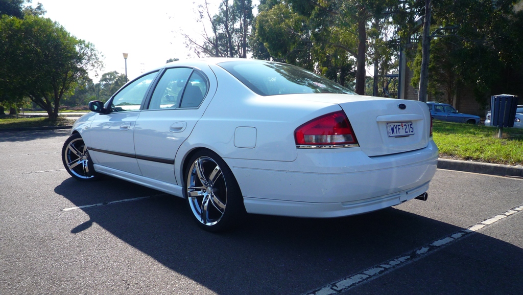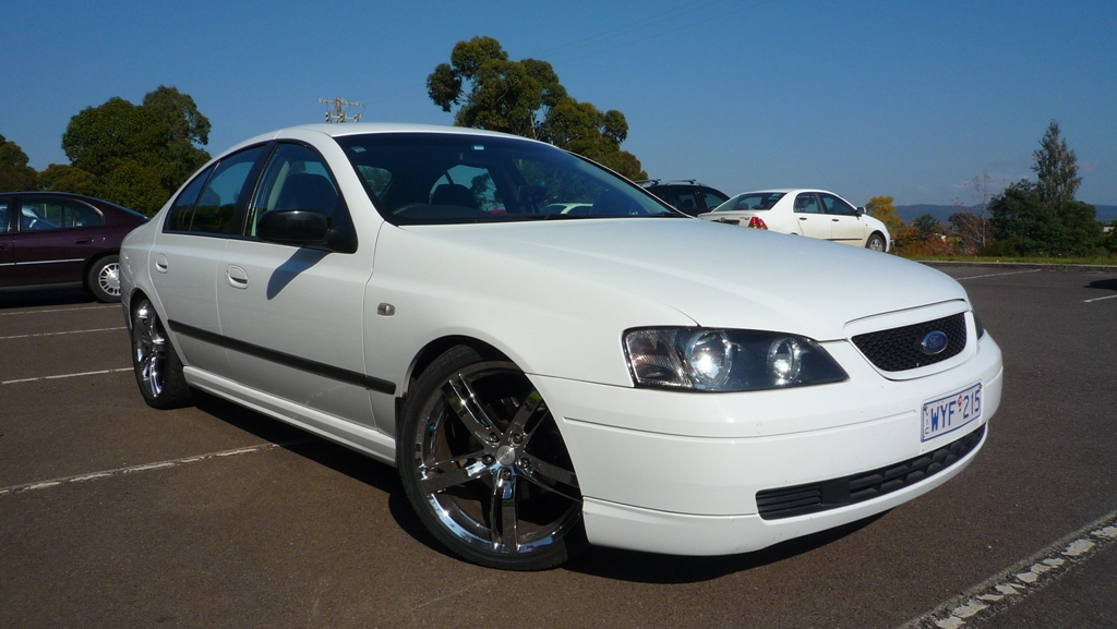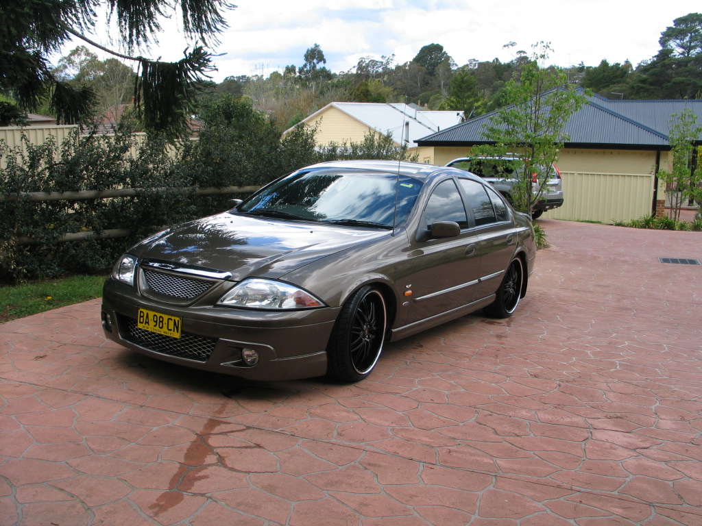 _________________ Ford Falcon BA XT 2003, Stock Engine, Factory Fitted LPG, Monroe GT Sports Shockers, King Coil Springs, Advanti Shine 19" 8x5 Rims, 2 1/2" Exhaust,DNA Fascia, Pioneer DEH-1350MPG Head Unit, Powervox 500watt 4 Channel Amp, Aerpro Hi/Lo Audio level converter, Pioneer 10" Sub Woofer |