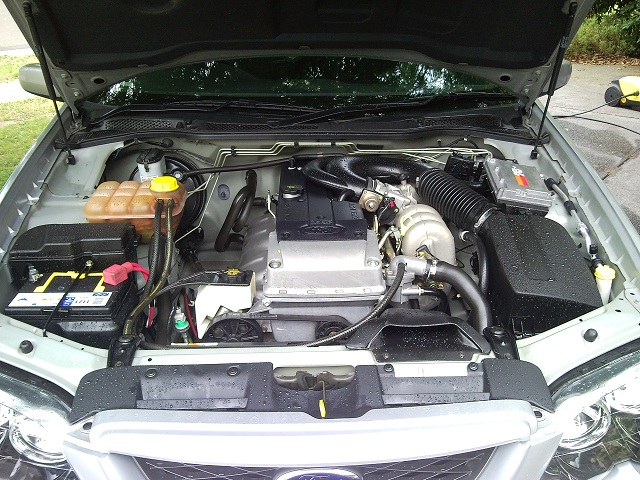 {USERNAME} wrote: This is not My car but a Car I converted to turbo its a AU S2 smartshield ute, Manual LSD, running a GT3582r (0.7 front and 0.96AR rear) running the stock BA crossover intercooler, AU injectors, 12:1 FMU, HKS FCU, and 3" exhaust with no mufflers but 1 hotdog (has 100cpi 3" cat though. Car made 199RwKw @ 6PSI on the last dyno run, tuned with a J3 running at about 10.1 @ WOT Pics ![]() ![]() ![]() ![]() Enjoy. Yeah and it would need every one of those 200RWKW