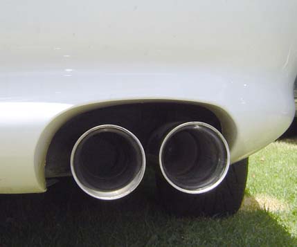 Heres a quick pic i had laying around, will find better soon. It really suits the fairlane/V8 IMO, looks good having them angle cut and staggered to the line of the bumper and not jumbo size.