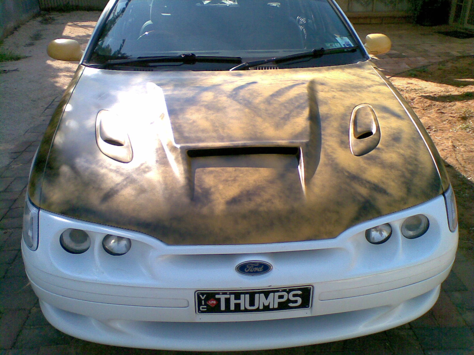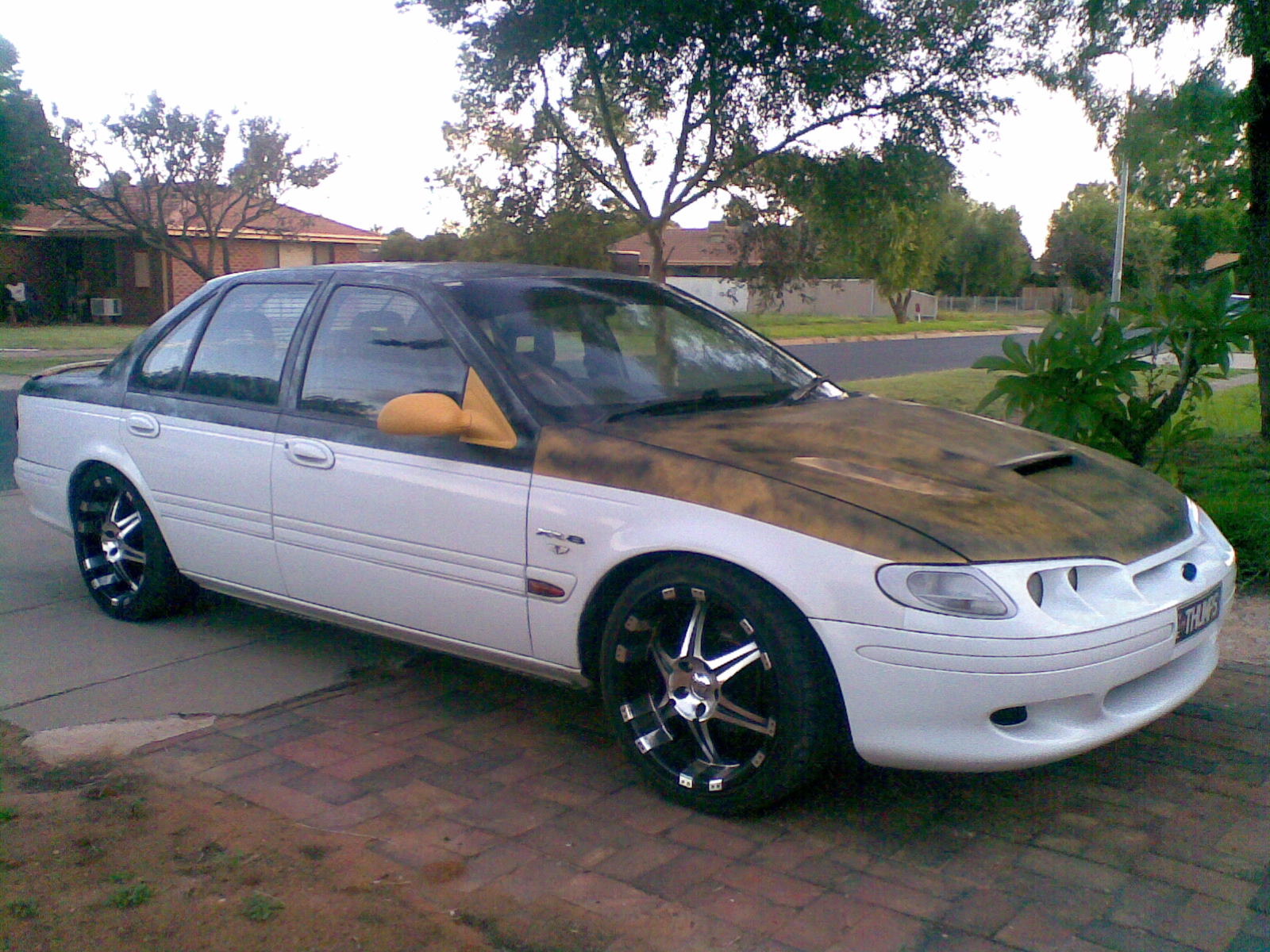 This is my current project its an option 20 ex interceptor xr8 and its a standard bonnet with buldge and scoop that I fibreglassed on. I'm painting the top half of the car satin black next week...