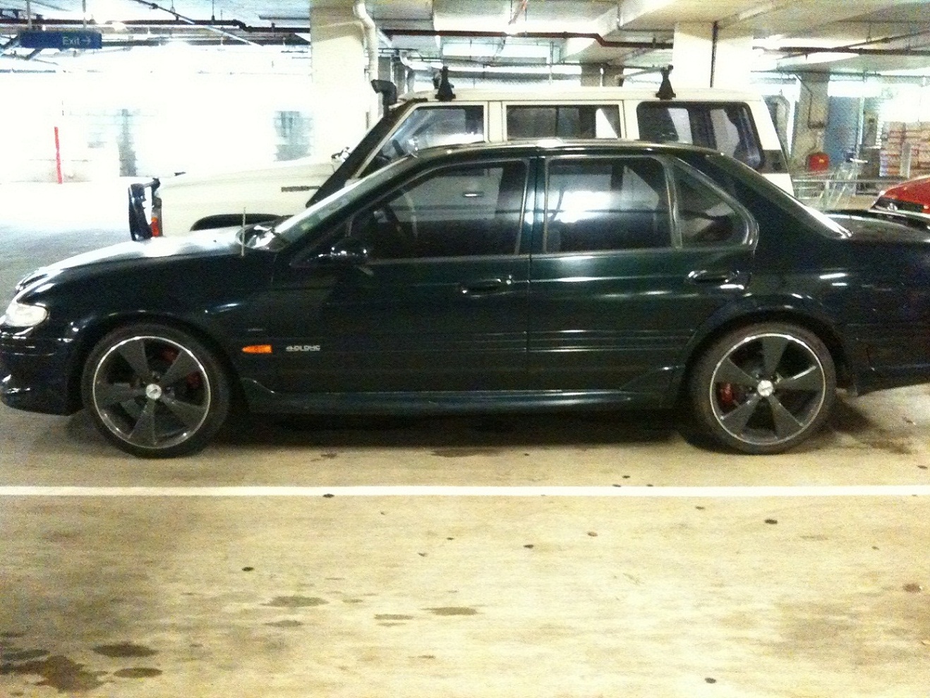i've taken the rest off bar the garnish.. and i got to admit looks better debadged and has that sleeper look to it ![]() ![]() on borrowed rims but i may be buying them shortly..but i'll have the full set of 17's hopefully 16 inch fronts 17 inch rears.. were taken off quickly as i found that the trailing arm was bent and letting the rhr tyre hit the lip in the guard some of the before mentioned damage.. ![]()