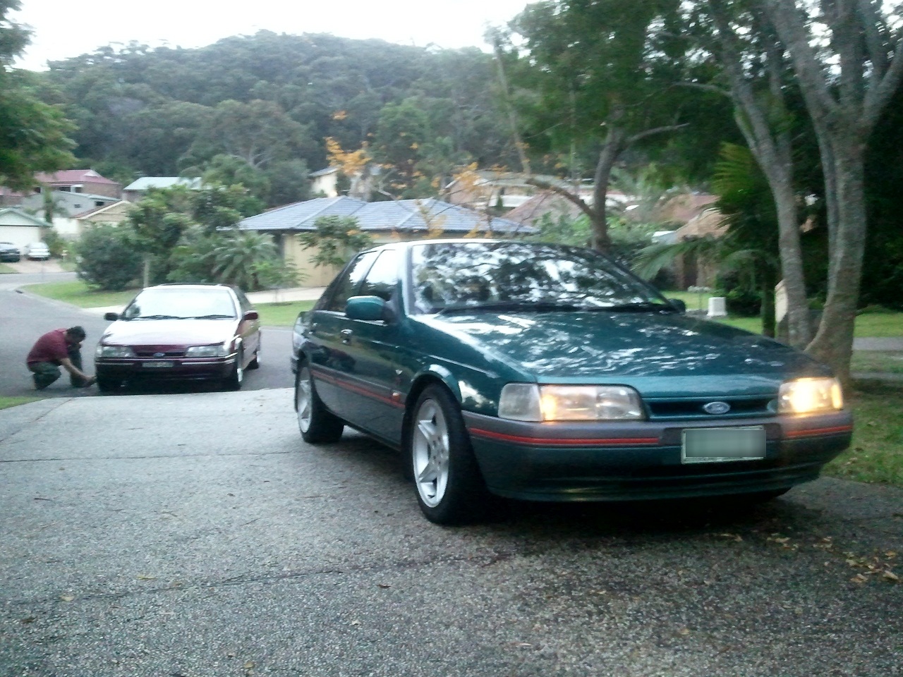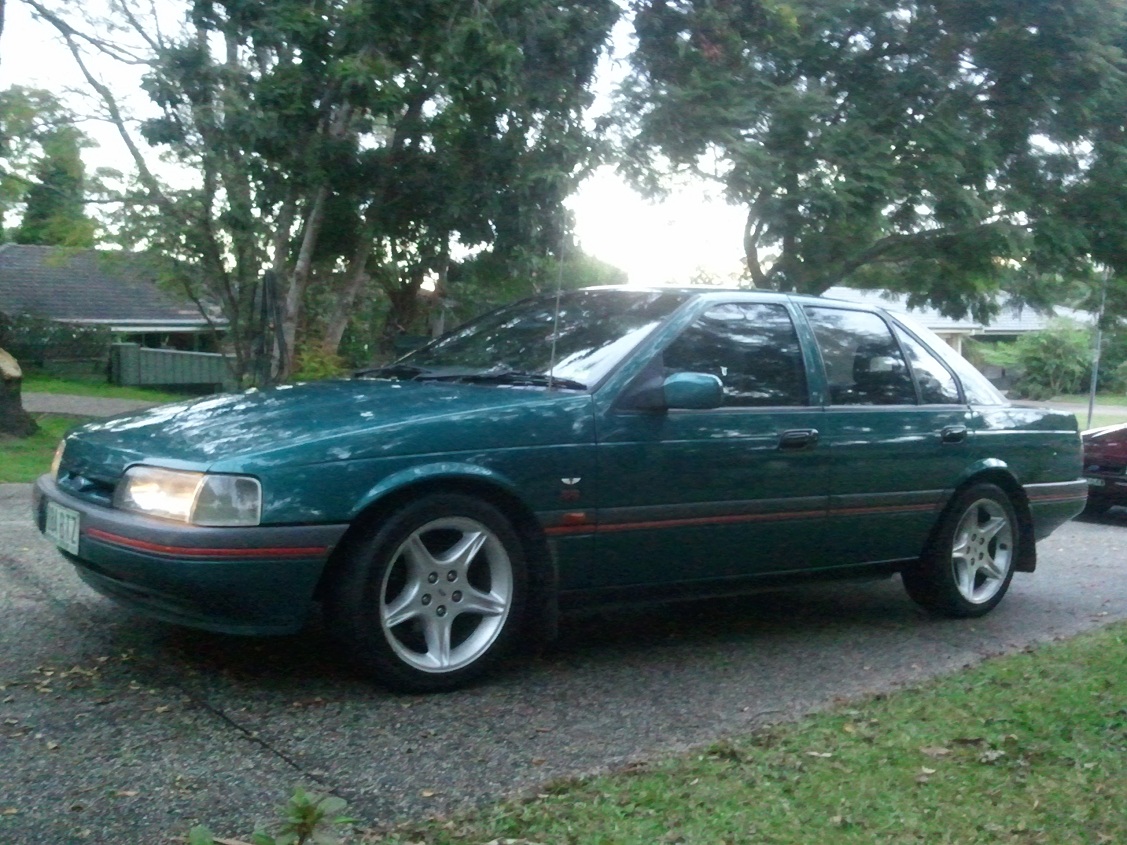 {USERNAME} wrote: Just picked this one up, 93 EBXR8 manual with power windows, fuel comp and rear headrests. [img] Attachment: Photo0188.jpg [/img][img] Attachment: Photo0190.jpg [/img]And now has my gt rims, 65mm t/b, 70mm maf, thermos, leather/velour seats, trimmed consol and realised it has a ed sprint exhaust from cat back A couple of pics with my brothers 5L eb ghia. Attachment: Attachment: Attachment: Attachment: Attachment: