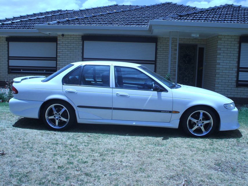 yeah i've always been a big fan of those rims. after looking at your car again i reckon it'd actually look good if you take the door moulds off completely coz the front and rear bars dont have the mould "indent" in them