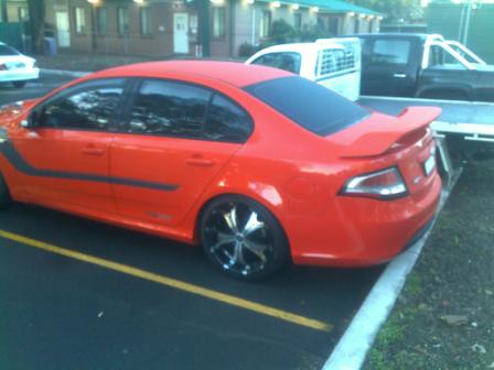 {USERNAME} wrote: {USERNAME} wrote: {USERNAME} wrote: {USERNAME} wrote: Thanks Obie Ive been recommended Polk Audio, and all up the system is gonna cost me close to 2500, which I'm not too fussed about, considering imalso putting another head deck down the bottom of the ICC (this also incorporates GPS and bluetooth) Im also looking to get the place to install it for me as del (as I'm a deep when it comes to making stuff haha) So a resonator should fix my problems. Do you know where you can get these? or if i could try install it myself? Or even what i should be looking for. I'll take a look on google and see what i can find Thanks thats alright mate i only have decent stuff to say about polk aswell as i had a set of their 6" two ways in my old triton ute mouted to the rear pillars they did really well on like guitar clarity as in that car i was running infinity 6" splits in the front which were good for the base notes yeah i just slapped that system together as i went yet by coincidence the two brands worked in harmony lol. yeah polk is a good choice mate. as for the resonator prob about 2 to 3 hunge for a decent brand i think they get welded inline between middle and rear muffler but not 100% on that but most custom exhaust places suggest them now when you get a cold air intake at the same time. obie. For all i know i could have one in there lol. Where would it be if i did have a resonator? - from my experience it just looks like a bulge in the exhaust pipe between mid muffler and rear muffler. I got some 20"s the other day what do you reckon of them? OBIE!! Those 20's look AWESOME! well suited for the car
