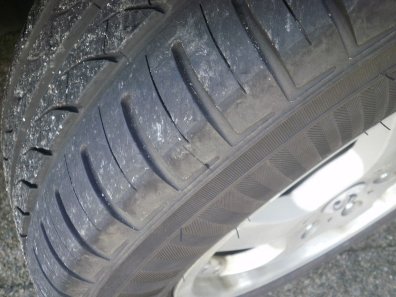 I have noticed scuff marks on both my front tyres, drivers side mostly, passengers side is mild in comparison. Both tyres did not have any scuff marks prior to fitting, Vehicle appears to drive straight but does go to the left a little when hands are not on wheel. Pics are attached. Are these scuff marks normal or abnormal? If abnormal, what would be the cause? Thanks