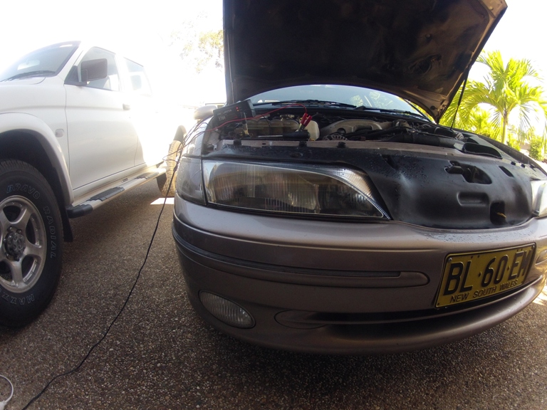 drove her from queensland all the way back to victoria. She's a 97 Ford NL Concorde with the tickford engine as you can see and I l think it came with the tickford touring suspension cause it sits lower at the front but when they removed the self leveling rear suspension they put on standard height springs so she sits a bit higher at the back :@ Never the less here are the pictures: ![]() ![]() ![]() ![]() ![]() ![]() ![]() ![]() ![]() ![]() ![]()
