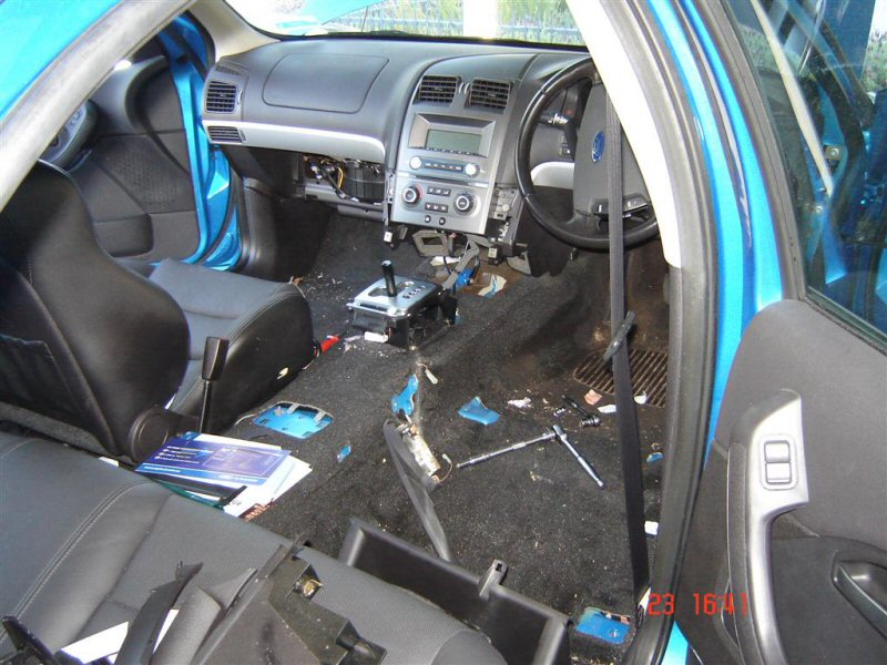 It didn't take anywhere near as long as you'd think, and it was good fun.. except for lightbulb jokes, it seems that three blokes one of which is a Ford mechanic arn't enough to screw in a lightbulb, lol.. the one in the rear console was a pain in the a*** to get it. Wish I'd vacuumed my car before hand though.