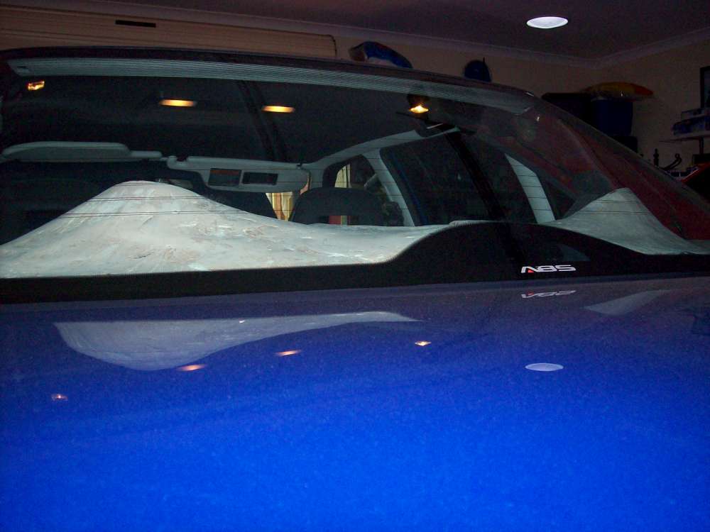 STEPS: 1st: I ripped the old material stuff off that ford put on there. 2nd: Made up some mdf rings to suit 6" speakers. 3rd: Made up a a little box bit for the Playstation 2, with a slot for the cooling, and a slot for the power and AV out, so you wont see the wires 4th: Stuck the rings to the parcel shelf using glue gun, made little legs for the rings to give extra support 5th: Went to spotlight bought about 70cm 145cm of Lycra (because it stretches both ways unlike fleece which only stretches one way) 6th: Stretched the lycra over the rings and everything else to give the fibrglass and bodyfiller the shape and support while working it 7th: mixed some resin and catalyst and painted it on the lycra so the lycra would go hard. 8th: waited for it to set 9th: couldnt be bothered using the fibrglass matting and more fibreglass because it doesnt need much strength 10th: put some body filler on it and smoothed it around 11th: sanded for about 2 hours 12th: more body filler 13th: sanded for 3 hours ((((( PHOTS TAKEN NOW )))) 14th: was getting alot smoother now and put some spot putty, waiting for it to dry now over night, will sand it again in the morning and make it all smooth and finished, then have to paint it white it may look crap in the photos and you cant really see how good the shape is when its in the car, those photos are of while i was test fitting it in the car. Test fitted the PS2 again and it sits so nice in it, flush and tight. It looks like the speakers would be touching the glass, its not.