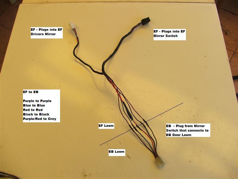 This shows the EF/EL mirror switch plug pinouts and the corresponding EB wires.