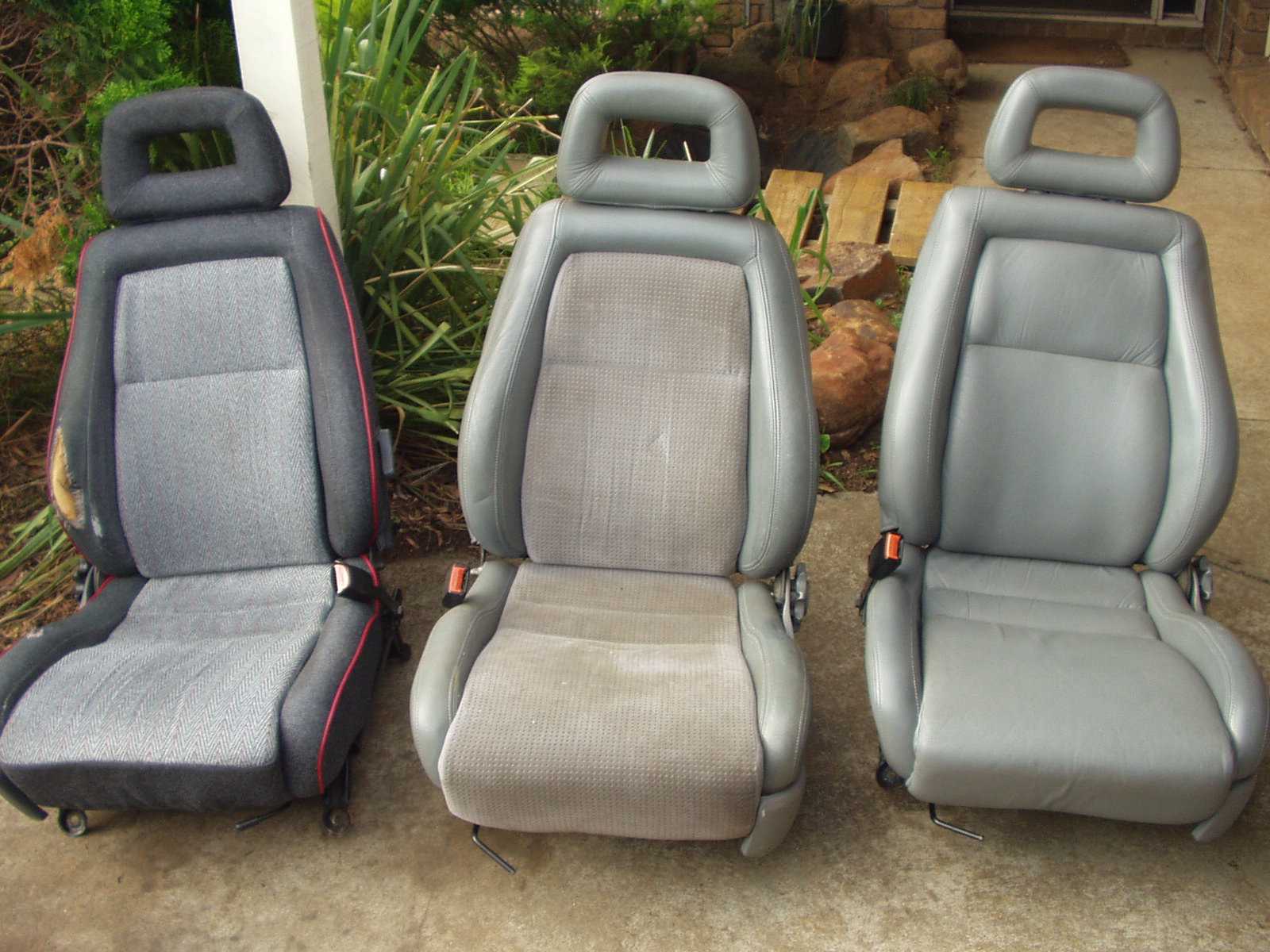 {USERNAME} wrote: I have to agree that the Recaro style seats are tops. Big blokes fit comfy too. These seats can be found in Fairmont Ghias and XRs. Cheers BenJ My mate Tom will vouch for the big blokes find them comfy too, in regards to the Recaro's. In the Xr's they were in cloth trim, Fairmonts Ghia's had two options, leather & velour or full leather. Attachment: Excuse how dirty the seats are, pic is to show trim differences. From left to right: Eb S1 Xr8 in cloth. ED Fairmont Ghia leather & Velour, EB s2/ED Fairmont Ghia full leather trim. Eb Series 1 Ghia's had a darker trim job in the same style as the middle seat, I think BenJ has these in his ride. Eb Series 2 Xr's had a cloth trimmed seat like the left one in lighter colors. Cheers ToranaGuy