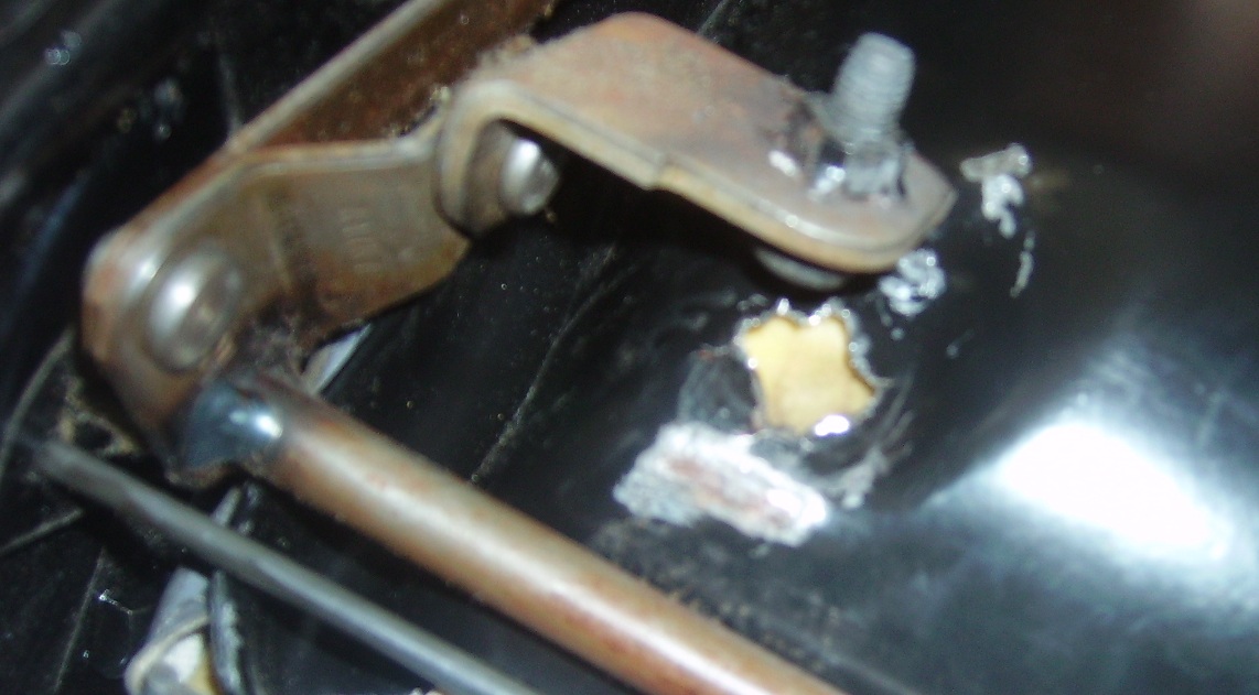 {USERNAME} wrote: {USERNAME} wrote: Mine did the same thing, it was annoying so I fixed it. I did this by taking the seat out, the cushion and the cover and all that off, and the seat-pan bit out (the part that the bolts have ripped through) and flattened the torn part down, then welded some big washers to it, then just put it all back together. It didn't take too long, just make sure you have the washers lined up well or it will be a PITA to get back together. So you took out the screws, welded the washers onto the seat-pan and put the screws back in? As far as I remember. The nuts are on the bar as far as I can tell from the picture?