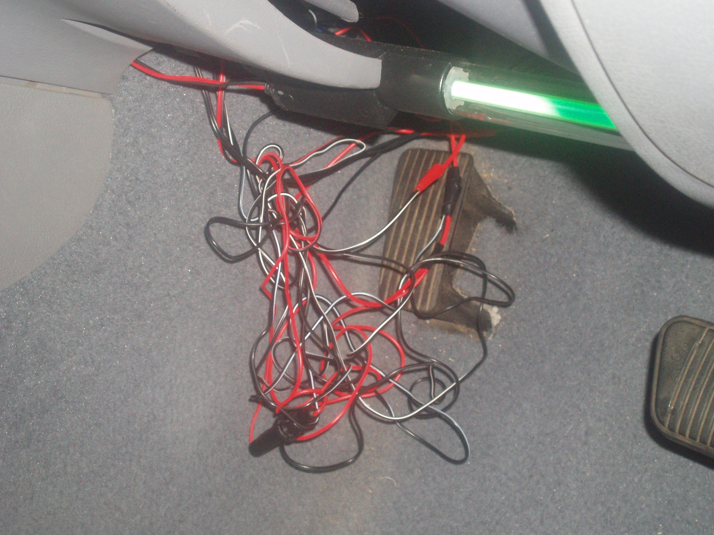 all u do is ground hte neons on the thing that turns the lights on when hte door is open (little stick that pops out when door is open).. you simply ground hte neons there and when u open the door, taa daa it completes the circuit and the neons come on The little black button thing? Nope doesnt work, tried that today. Unless I made a mistake but Im pretty sure I didnt. Where does the positive wire run to? |