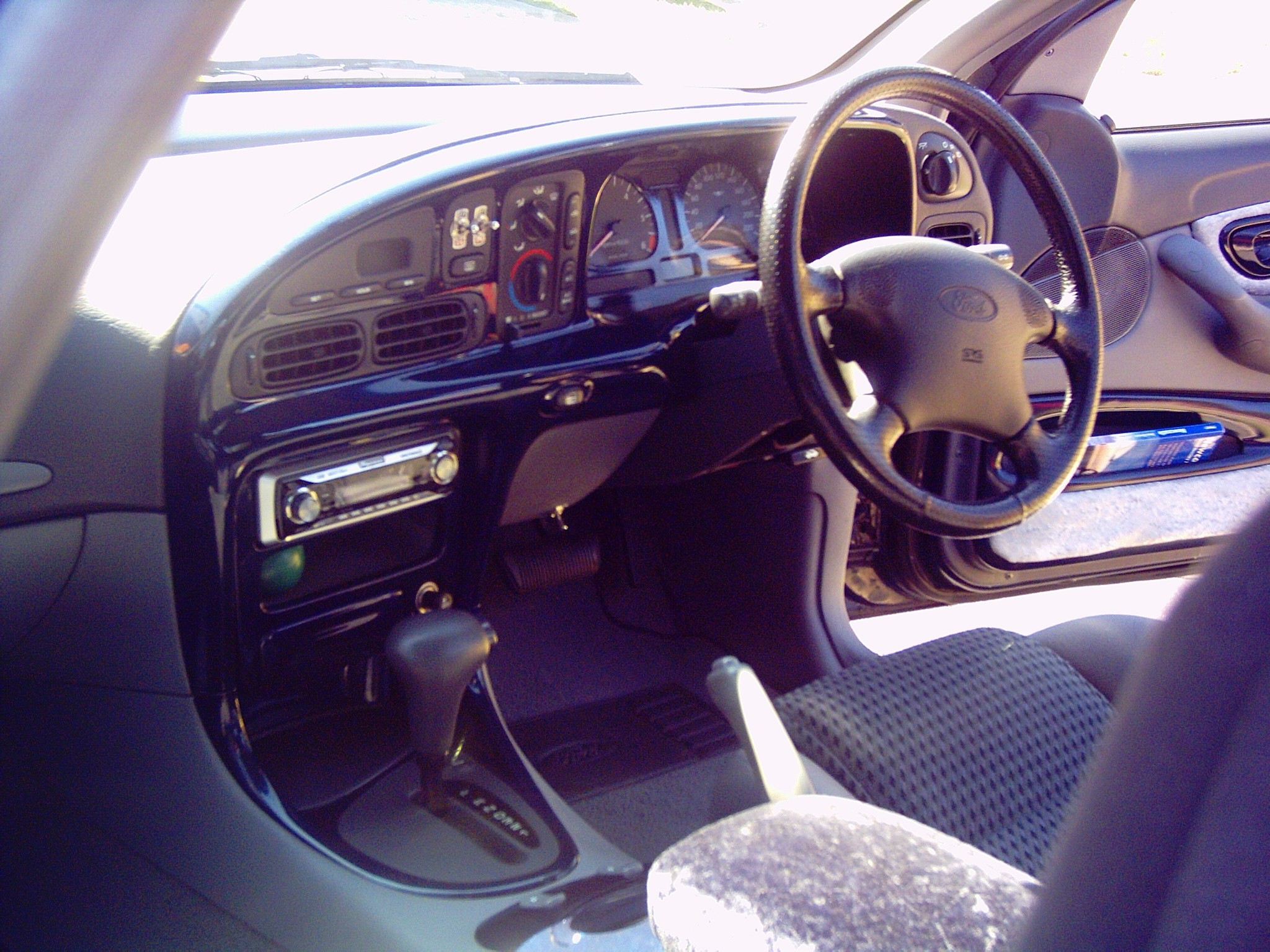 Your dash looks good - the outside of the steering wheel matches nicely, but for safety's sake put the air bag back on! /edit spelling being a panel beater and having to remove & refit these things regularly probably makes a bit of a difference.I dont think you will get a recall from ford but the air bag tech i use to fit all the modules and clear codes was telling me about the life span of older bags with new technology things are a bit different now in the states at the moment there are big s**t fights over on off switches for bags and they are trying to introduce 'smart' sensors that detect different weights and deploy bags with different forces ie kids in front the idea for the switch is for people with back problems people who have heart conditions etc I have been told by many a person I dont have a heart so I might fit in the last class {ha ha} I know the wheel is probably not legal but until I can find a good replacement with a bag it will do I am not paying 1000 for a new bag and another 500 for a new wheel as the xr has a different bag to the stocko I have been told by ford
