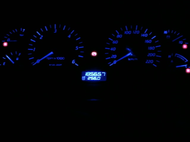 my pic under krytox's shows the blue led on the odometer. i took the pic out in the pitch black driveway, would show up brighter if i took it inside with the light on. pics are from my phone. mine uses a 10000mcd blue led from jaycar, u can get blue in 15000mcd now too. my dash photographs blotchy, but is very even colours. u can see the odometer and clock easily during the day