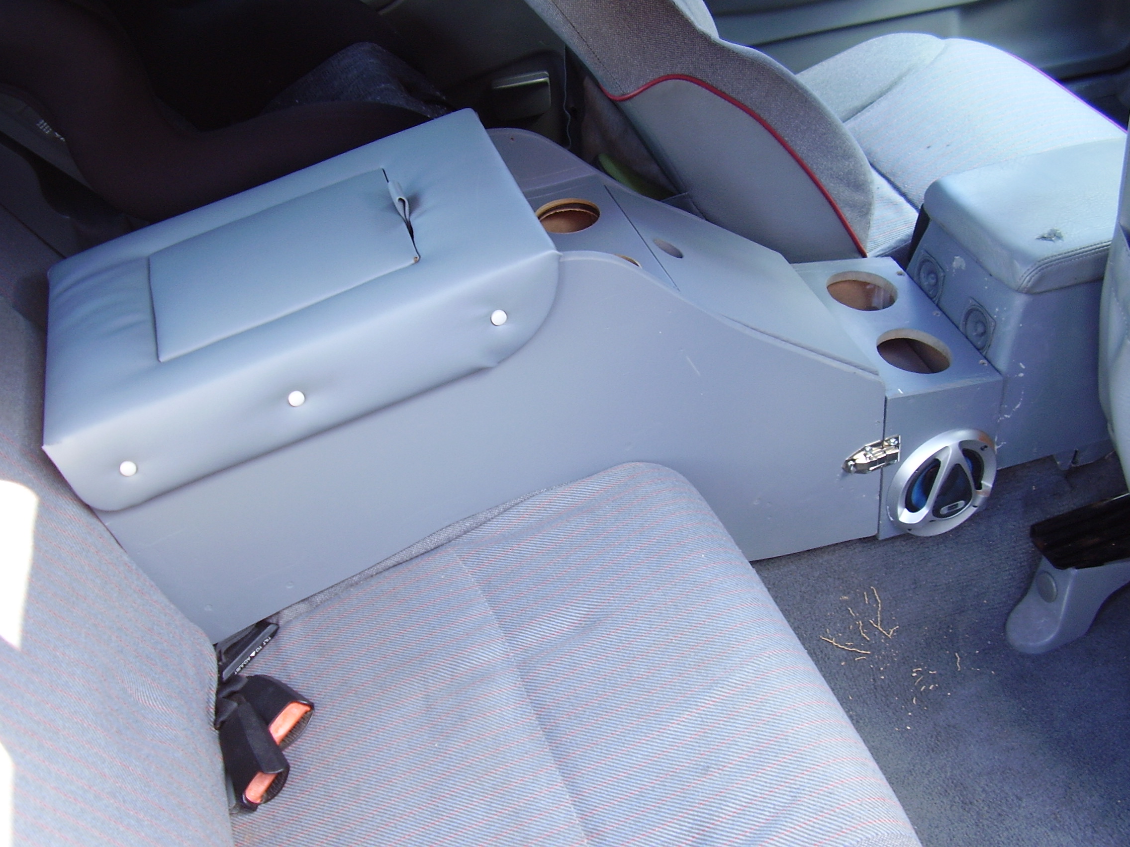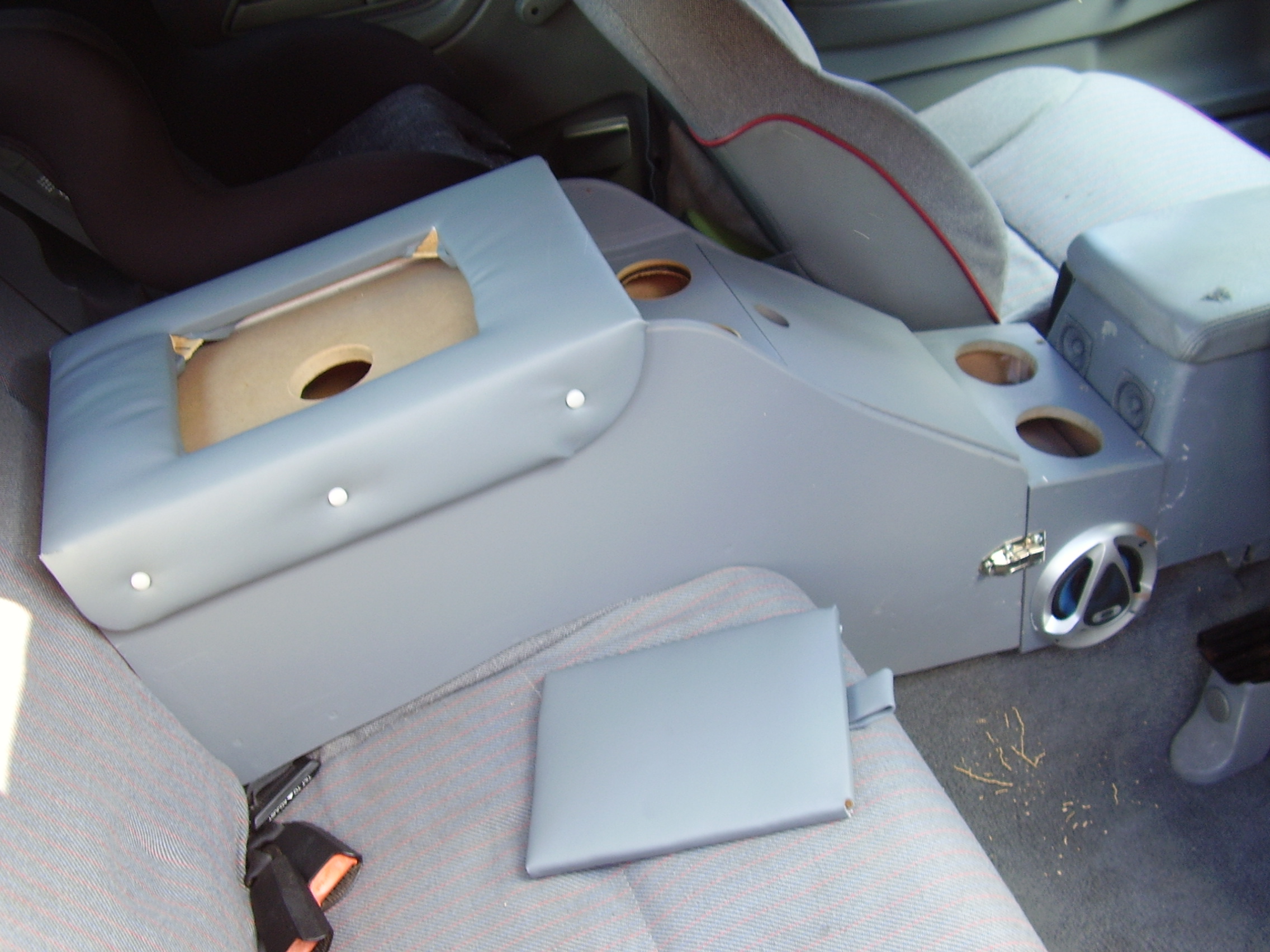 I did see this on another site and replied to it. I used to do stuff to large boats and suggested he use 4ml MDF which is cheap as hell from www.nover.com.au, then fibreglass it. Also as an after thought, if you get some flexi pipe and run it from the aircon to the cup holders and put some small hols in the box you could have auto cooling or heating from the aircon/heating vent for drinks and hands.