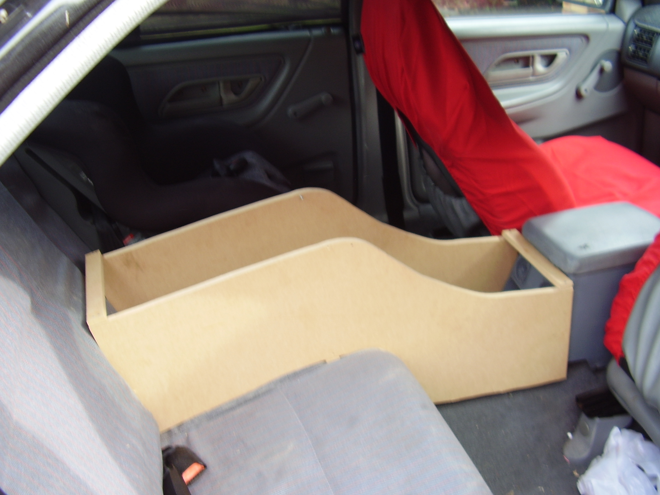 but since ur already half way there ill give u some ideas......a cup holder that could possible hold the largest cup but also small cups nicely and maybe some pockets so passengers can put their mobile phones and wallets. im guessing thats for either one 12" or 2 x 10" subs? or just speakers? carpet or suede would be nice and some proper arm rests. make sure u put some holes where the wood hits the ground so that the air can flow from those 2 vents u just blocked. oh and if u have spare parts just put in a curtesy light some where =D. just some ideas phong =P~