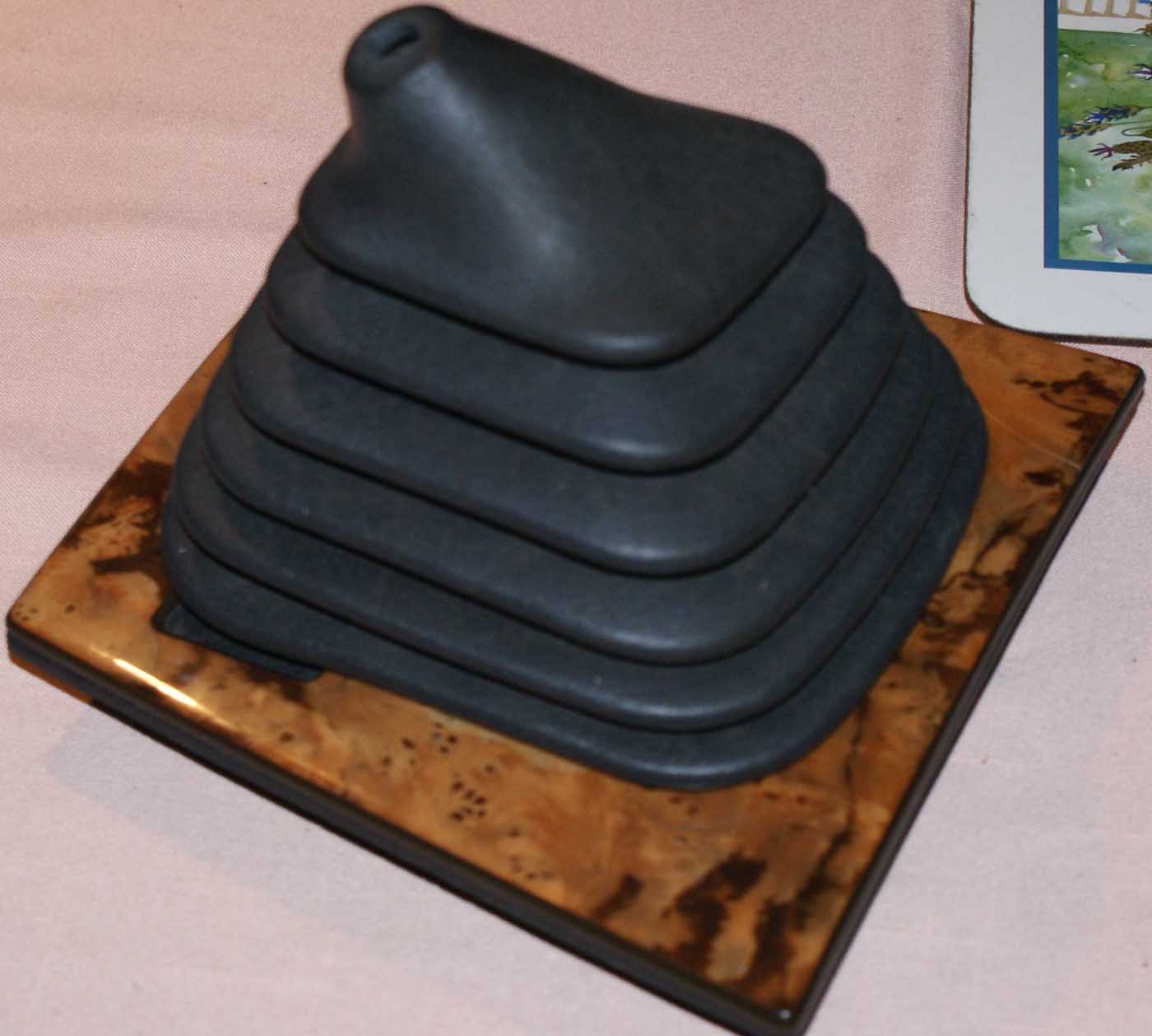 I am preparing myself for a battering from all you people who wish they had the woodgrain in one piece, but anyway, As i am putting a T5 into my LTD, i didn't want the "poverty pack" look of the Grey plastic console surround, so i spent many hours crafting this with my Dremel. It is not quite finished as you will see it needs a bit of tidying up around the edges, and the rubber boot is just a temp measure as i know an upholsterer who is making me a custom Grey leather to match my trim that will come up over the edges like a lip effect. As for the small hole where the auto "power" button used to be, i will be covering that up with a small chrome rectangle with the shift pattern on it and also a ford logo.