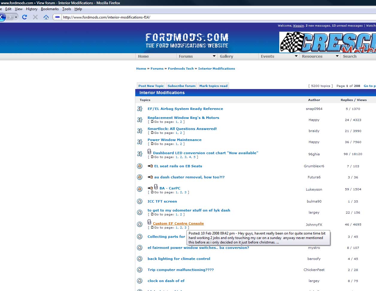 {USERNAME} wrote: This blows. It's not full width, I don't have "fast reply" and hovering over topic links doesn't give me a preview. You have exactly 1 hour to fix this or I will declare Jihad on your souls. It's not the size that counts, it's how you use it. Fast reply will not be available in Fordmods v3. Link hovering works fine for me in IE and FF.