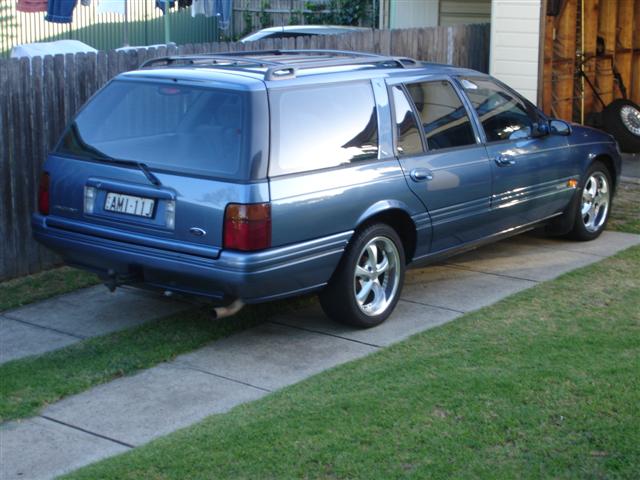 1996 EF2 Fairmont Wagon. all power options in good working order, 4lt auto straight gas, bloody cheap to run. $40-45 to fill from empty = 400-450k's around town lowered on pedders springs and shocks reset leaf springs with extra leaves pacemaker extractors, 2 1/2" exhaust head recently reconditioned all 4 tyres have 95% tread on fairmont rims, plus i will throw in the 17" mags aswell (need wheel nuts) slight gutter scrapes and one has a tiny buckle but they look s**t hot on it. jvc cd/mp3 head unit with remote control + 12 stacker in back body is in excellent condition towbar interior is fantastic also. i would be looking for $6000 as this really is a good wagon. i am only going to sell as i need something a bit better to tow with. cheers Rob. p.s. the only photos i have are before it was lowered, looks heaps better now.