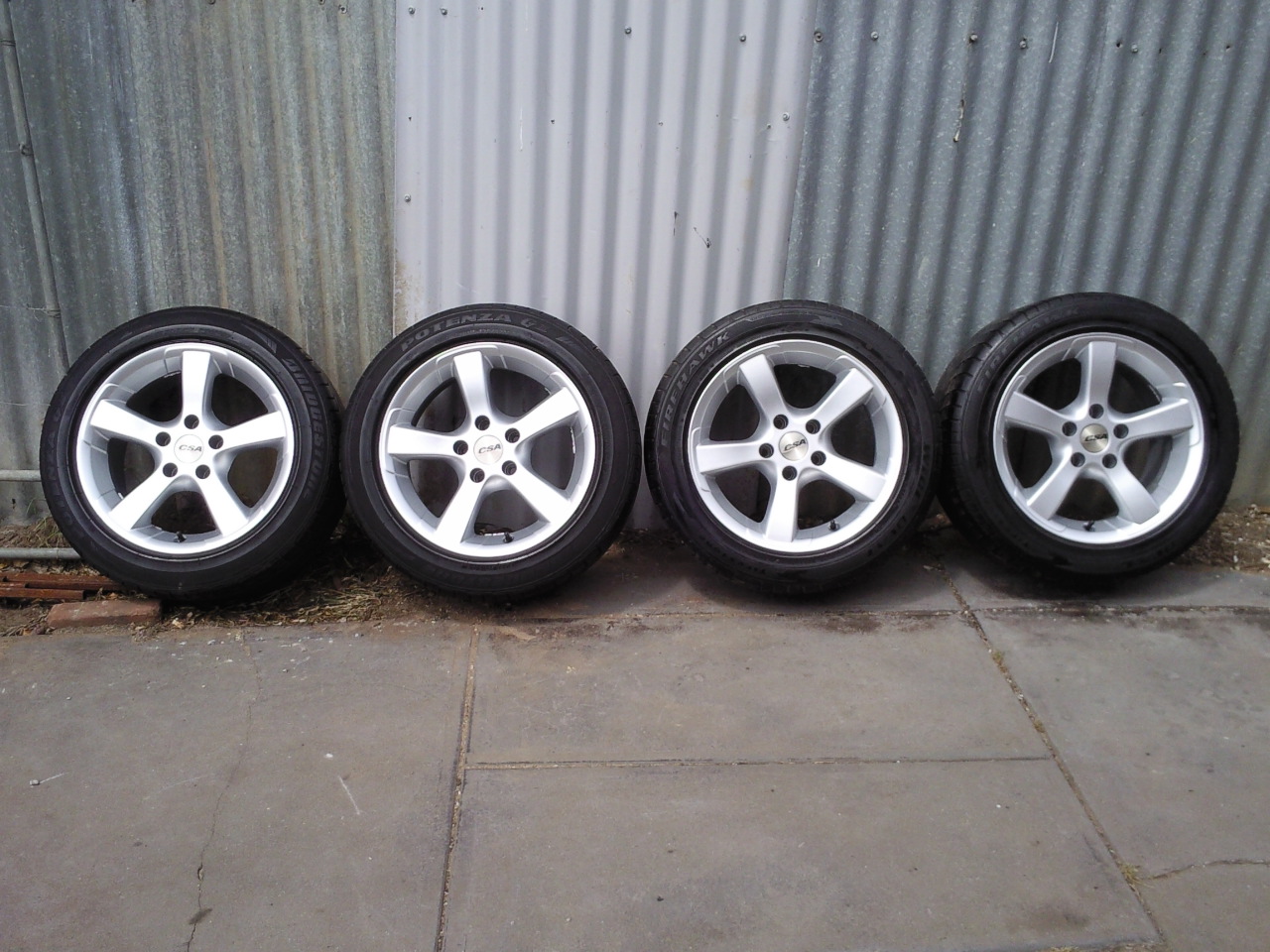 suit ford XR to EL no scratches or scrapes on wheels, tyres have 3-4mm tread left. 225/50/16 bridgestone rears, 225/50/16 firehawk fronts, some camber wear on one asking $500 ono, NOW SOLD Attachment: Attachment: Attachment: Attachment: