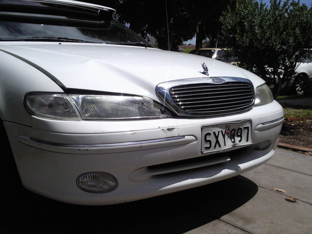 leather lifting on a couple of corners, drivers armrest worn, some small nicks in trim outer edges too. asking $80 the set, pick up only ![]() ![]() will get pics of rears wednesday ef fairmont ghia/nf fairlane dynamic white bonnet with ghia badge and rough el grille NLA PICS BELOW a few posts down