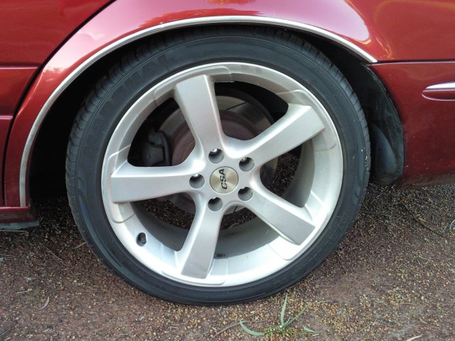 I'm chasing a set of EL Fairmont Ghia rims, i'm looking to swap my 18" CSA Gladiators if anyone is interested, i'll even throw in a hundred bucks to sweeten the deal. All four rims are in great condition, one rim has some slight gutter rash, never been bashed up a kerb, there are slight stains on the inside of the rim from brake dust, but i can clean that off easilly enough, two front tyres have some rounding on the shoulders but otherwise still heaps of meat left. If anyone is interested, i'll be happy to get individual photo's of the rims, but seeing as the car is stuck in the shed at the moment, i'll throw up a couple of general photo's for now. *EDIT*: Rims must be in reasonably good condition with minimal gutter rash and surface marking. Also must be fitted with roadworthy tyres, as i still need wheels to drive the car around on.