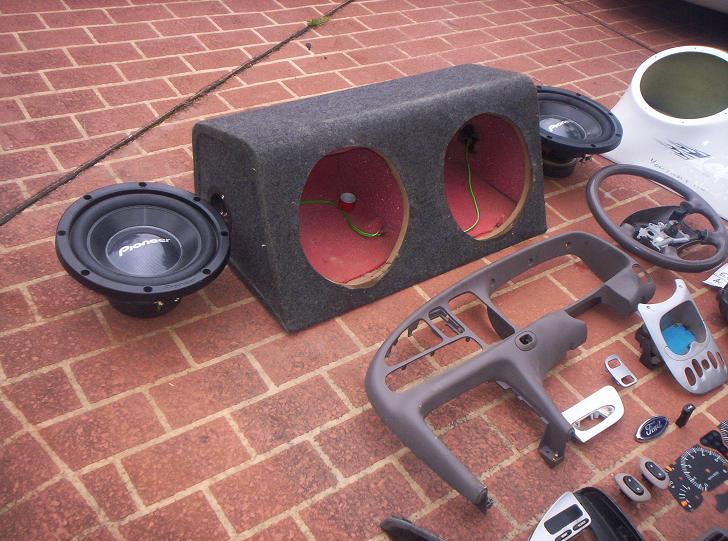 carpeted 2x12 inch fabricated sub box.. $50 white fibreglass 2x12 inch sub box.. $100 EL air induction pipe.. $30 DF Fairlane cornering lamp surround.. (white) (to support the clear side indicator).. $25 (drivers side) EF tail lights (clear indicators cappa dash surround.. $40 in good condition.. -no cracks or scratches... EL ghia leather wrapped cappa steering wheel and shroud.. $50- now $30 (a lil discolouration on the top of the wheel) -typical thing with age..SOLD window trims.. (in good nick,not rough or sunfaded.) -$20 -EF EL(sedan) EF mudflaps off the rear of my fairmont sedan (no tears) $5.. *and offers on all the other small little stuff...