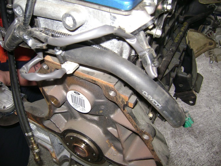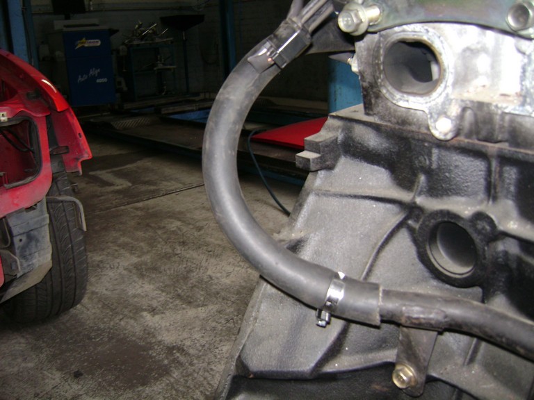 Ok first thing you wil need to do is modify the front bar of the K frame, we moved it all the way to the front of the K frame. You then have to modify the BF engines metal heater lines, we used rubber hose to join the exhaust side pipe to the intake side pipe, now the pipe on the intake side is from a el engine i forgot to take a pic but i will upload 1. If you are running a manual trans you will need to cut a section out of the barra sump casting to allow for the clutch cable, the Ed clutch & flywheel bolt straight up to the barra engine.