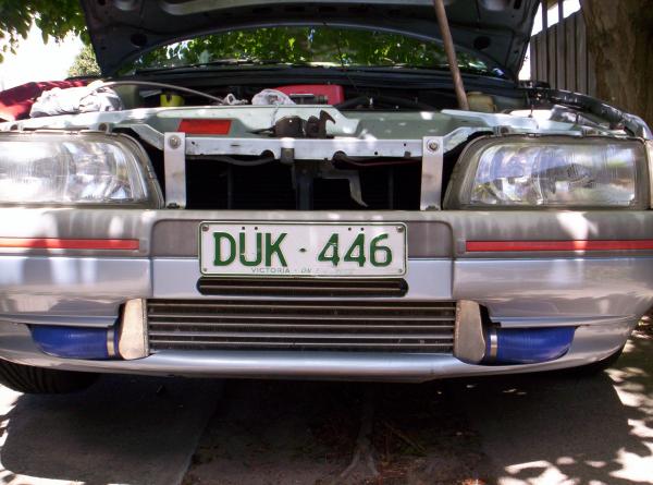 i'm fitting a 600x300x75 inter cooler to my eb fairmont. I have the el ac condenser in it so the reciever dryer is off to the passenger side. I'm after peoples opinions/pic's/ experience as to how i can go about it with out having more than half the intercooler exposed. I don't wanna chop most of the bar away. Should i try get an inter cooler that is taller and narrower so it misses my reciever dryer and so the cooler is close to the condenser?