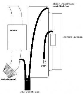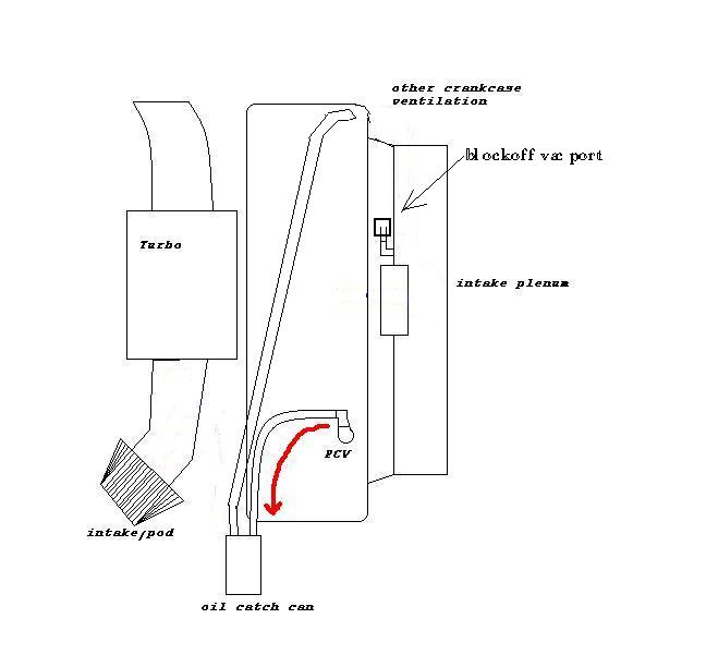 almost finished my turbo project and gets tuned in 2 weeks BUT i hav come across a problem with oil coming out the dipstick at about 2 grand. its a fresh motor so there is not blow by and ive pin pointed the problem to the crankcase ventilation system. does anyone have any good and simple ideas to resolve this?? ive put a diagram which i think mite work but if anyone thinks it wont please modify the pic so i can work off it thanks heaps!!!!