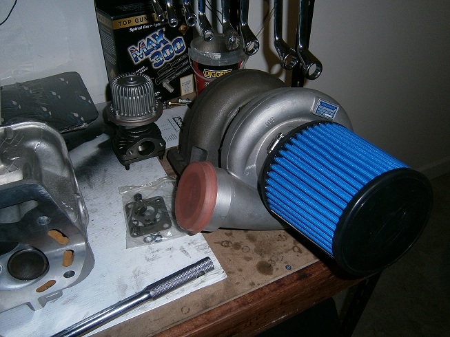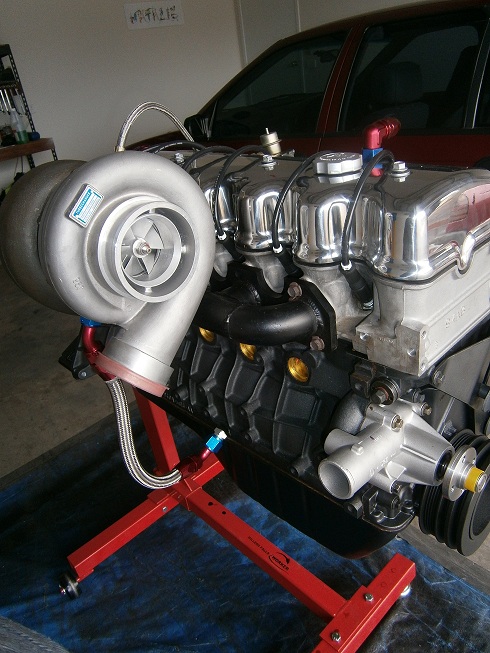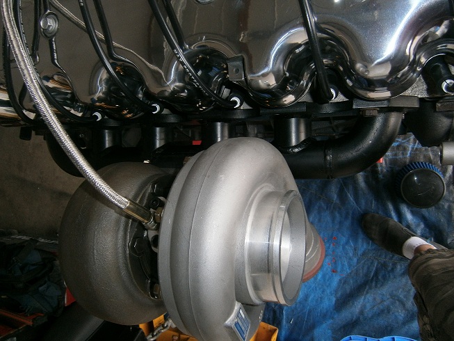 Got my manifold today and mounted the GT45 T4 turbo so the motors pritty much done. just have to swap the accessories when I pull the other mother out in a month or so .