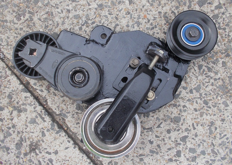 I spent much of yesterday afternoon resetting the position of the tensioner, bigger pain in the butt than I thought it would be. My first attempt, I set the tensioner roughly in the position of the Barra location. Problem with this is the timing mark for the Barra is further to the right (looking from the front) than the AU timing mark. The belt fouled on the spring section of the tensioner and when I rotated it, the belt rubbed on the timing tab (I used the EF car I have for the mockup to test this). I relocated it further to the left and then it rubbed on the AC Pulley AAAAAAHHHHH. 3rd attempt got it spot on. This chewed up 5 hours of my afternoon. I got the idler pully back from Daz this morning, thanks for your efforts on such short notice, ducked into CMS with the front dress plate and did some measurements. Rushed home and set about mounting the Idler Mount. As you can see from the below pics, I have slotted the mount bolts and also fitted an adjustment bolt to get further tension if needed. Attachment: All completed and a coat of engine black and off to CMS. Fitted up the front dress, set the idler pulley at it's less adjusted point and fitted the belt. Belt went on nice. Fired her up and NO BELT SLIP. Gave her a few taps on the throttle and all was good. Every thing working as it should. Tensioner is on tension by about 5mm so I will adjust the idler to give a bit more tension but only to allow for a bit of belt stretch which should be OK as the belt is from Gates. Attachment: Attachment: Attachment: VERY HAPPY MAN Refitted the Thermos and now all that is need is a Transmission flush, New S5 (Pissing off the adjustable Comanhore S5)(Shifts will be set as normal when on economy and set for hard shifts when on Power. This is all through the SCT Chip) and fit the new Auto pan, which has a temp sensor in it. Joe will be doing the tune on Thursday as he has 2 FG's in with cam changes as well as tunes. He said he may get a chance tomorrow but definatly Thursday as Friday and Saturday are out due to Easter. This puts me about a week behind where I expected but with the front dress issues and a couple of things I am still very happy. Last edited by SWC on Tue Mar 26, 2013 7:51 pm, edited 1 time in total. |