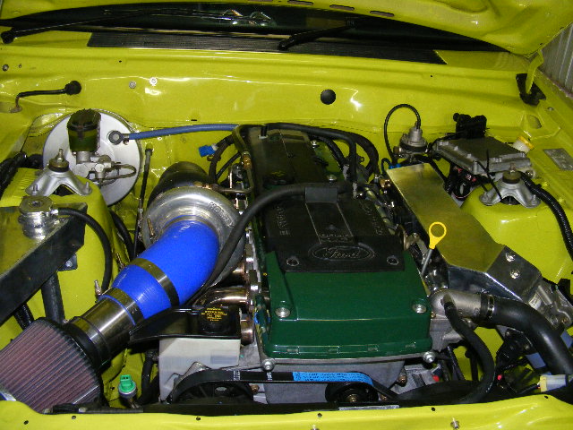 Anyway i won't go into great detail, but essensialy its an 91 XF ute with a 06 BF engine with a hairdryer on the side, tremec TKO 600, and some big wheels.