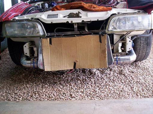 is that your car looks stock as a rock from the outside, EF GLI hubcaps n all, but should be packing 300+ rwkw! thats how it looks from the front on cooler pic. Only hint will be the cooler really, thats awsome!