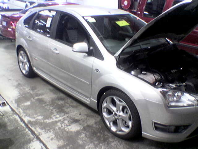 I don't know any specs about her yet, we don't have a workshop manual yet. But i do know its a standard focus shell with some not so standard heavy modifications, The front brakes are huge, its a 5 cylinder not a 4, and there is a turbo stuffed somewhere in there, the exaust manifold is on the back of the motor, and i couldn't be f**k puttin it on a hoist. I havn't driven one yet, but i started this one up and revved the balls of her a few times. Smooth and it sounds like a little angry motor car. Anyways Pics added