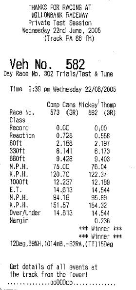 Much appreciated ignition for putting up the slip to prove it, thanksI'm going to pull the manifold off and have a look at the heads, rockers and associated gear, i might have a explorer manifold and EB GT computer going on soon, we'll see wat happens That time was still on std 30deg timing but i'm mucking around with that atm I'll be going to willowbank again in a couple of weeks to see wat it does without the spare tyre and back seat and adjusted timing
