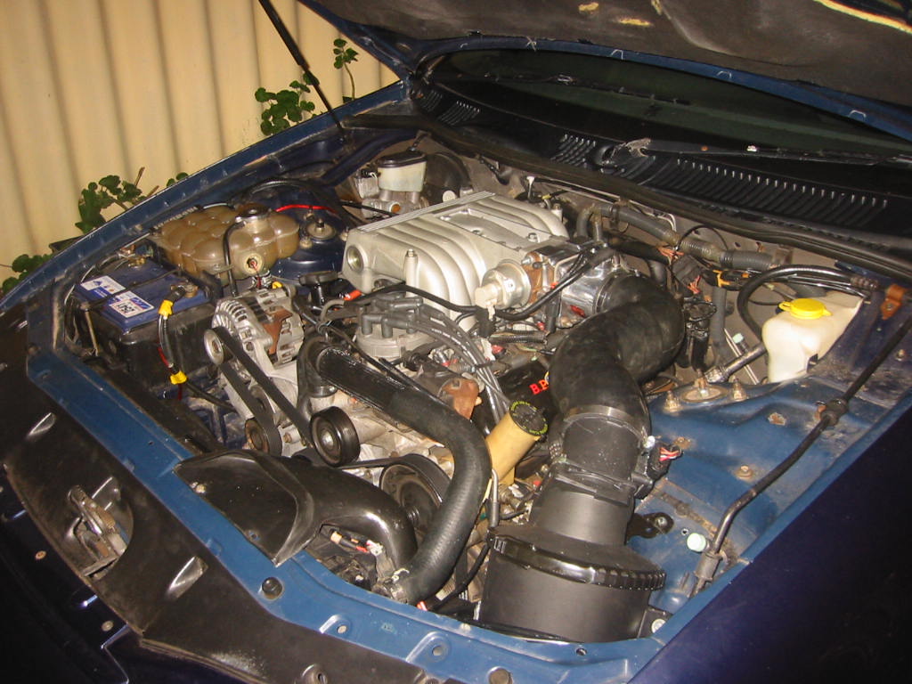 i finally got to fit the au front setup that i wanted and it all works great eventhough i had to spend a few dollars for the conversion the parts i had to buy; au top radiator hose au bottom radiator hose au high pressure power steering hose au 6 cylinder belt because i didnt want a/c compressor things i had to modify fuel lines but i could of bought the au lines had to cut 1 cm for distributor to fit ill post up some pics tomorrow |